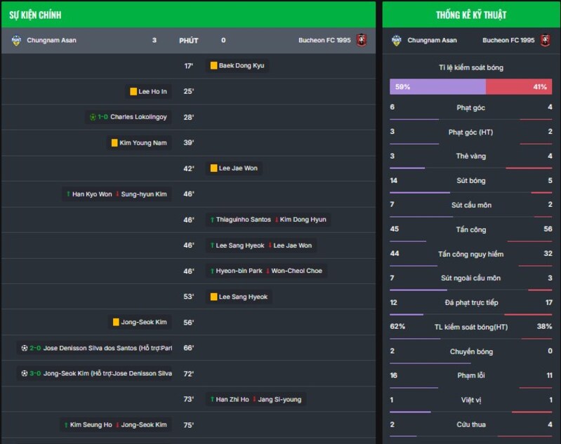 Nếu anh em hỏi đâu là tính năng khiến tôi mê nhất ở Bongdainfo, thì câu trả lời chắc chắn là ty số trực tuyến. Nhưng nó không chỉ là hiển thị bàn thắng hay phút thi đấu, mà là cả một bảng thống kê sống động: